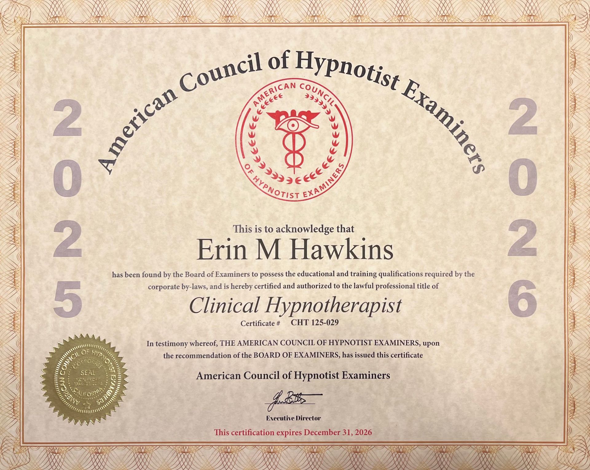 Hi, I’m Erin Hawkins—Certified Hypnotherapist in Sacramento and founder of Inner Synergy Hypnotherapy, LLC. I offer both in-person and virtual hypnotherapy across California. Whether you're facing anxiety, low self-esteem, past trauma, or chronic stress, I’ll help you reconnect with your inner strength and create meaningful change.
